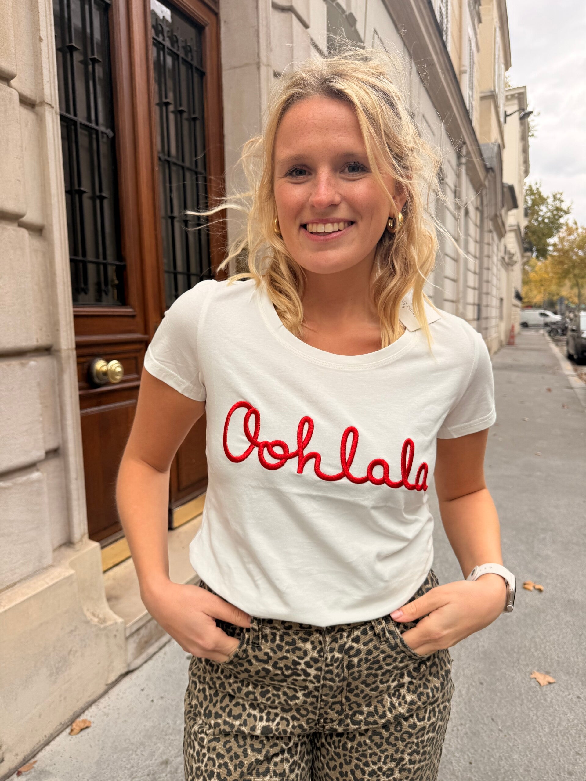 - Zachte T-shirt met het opschrift ‘Oohlala’. Een leuke, casual basic met een speelse touch.