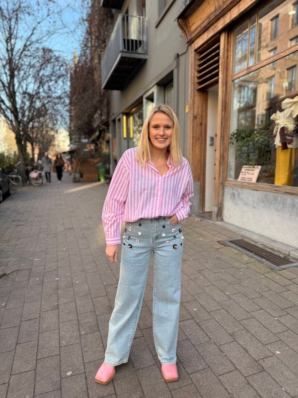De Charlotte jeans is helemaal klaar voor de lente. De bloemetjes langs de voorkant maken onmiddellijk indruk!