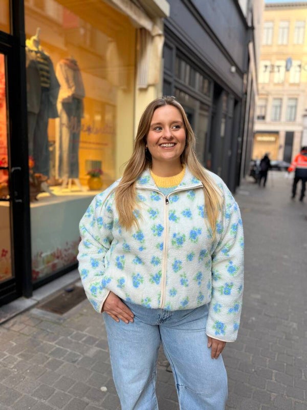 Deze heerlijke teddy is dé perfecte mix van comfy en cute. De witte basis met blauwe en groene bloemen geeft een frisse, speelse uitstraling.