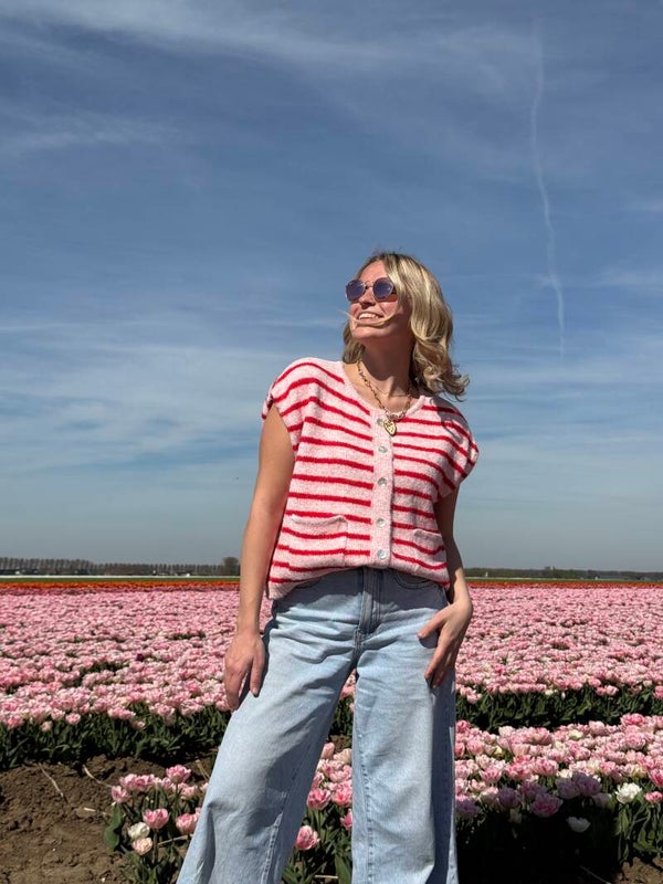 Sien debardeur light pink red stripes