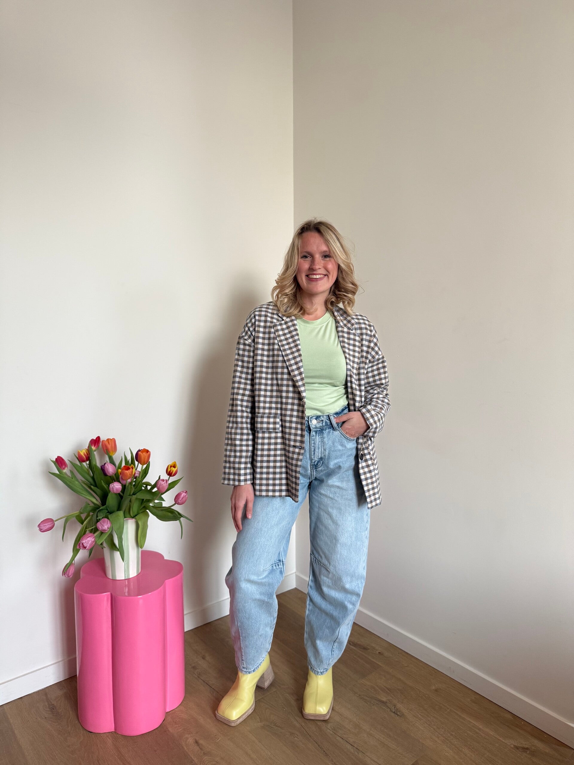 Nele is 1m58 en draagt meestal maat L.