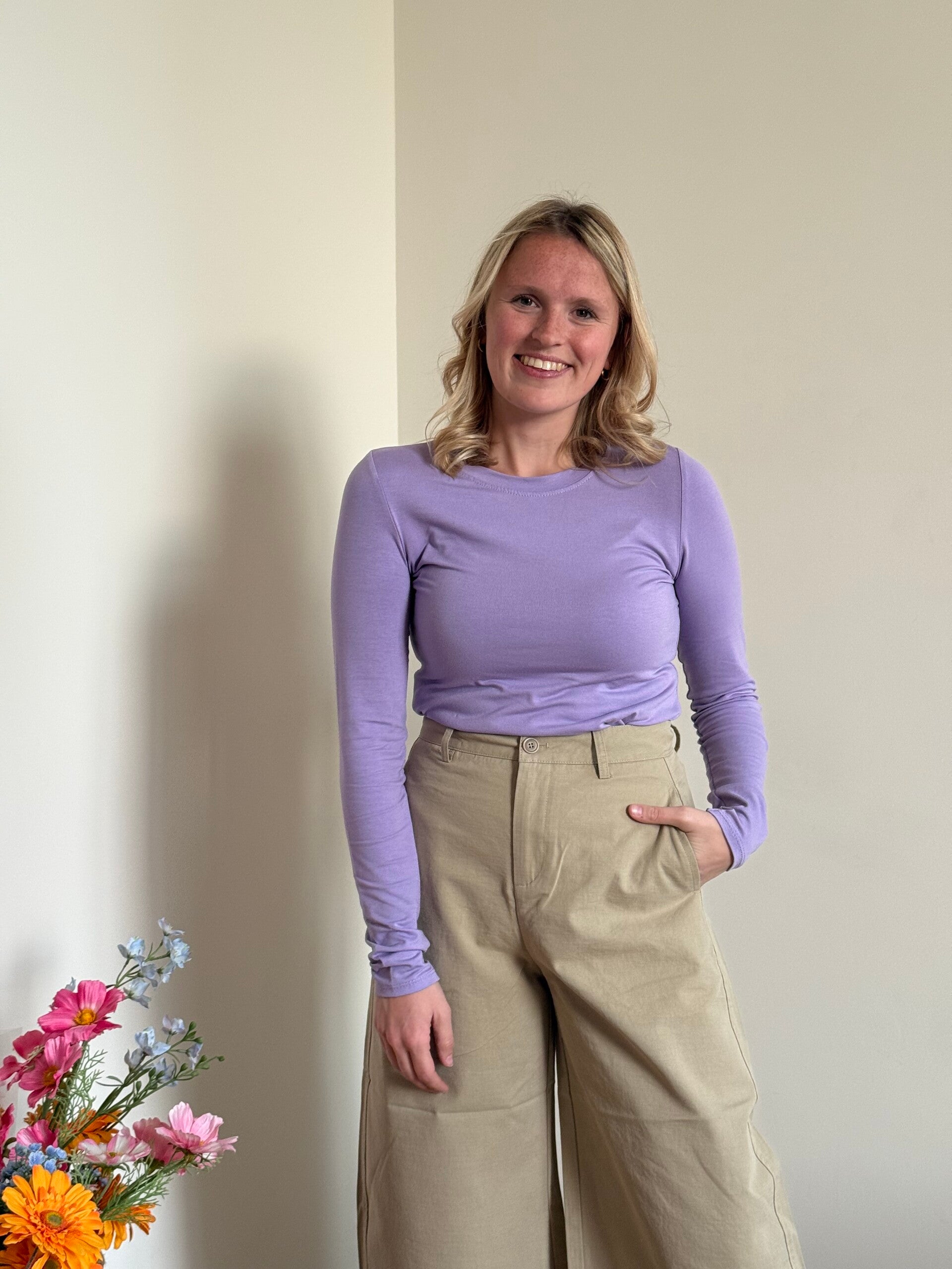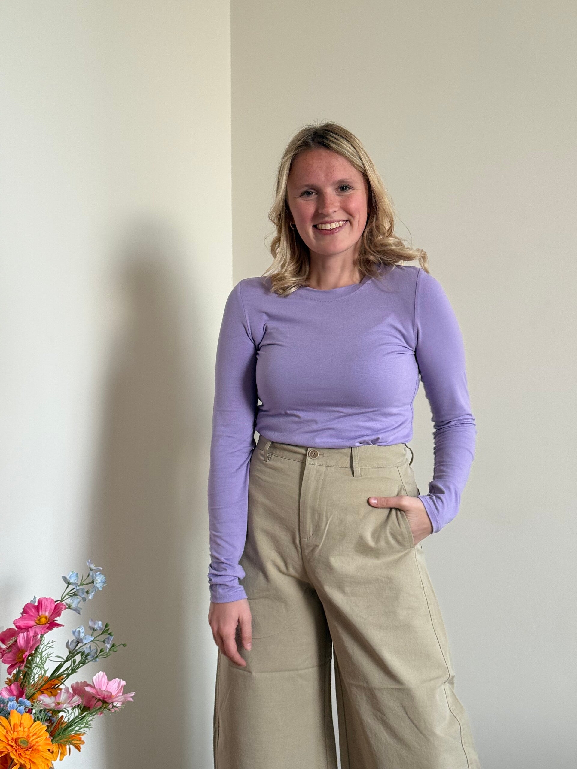 Pasvorm: Aansluitend truitje in zachte t-shirt stof. Ideaal voor onder een blazer, trui of debardeur!