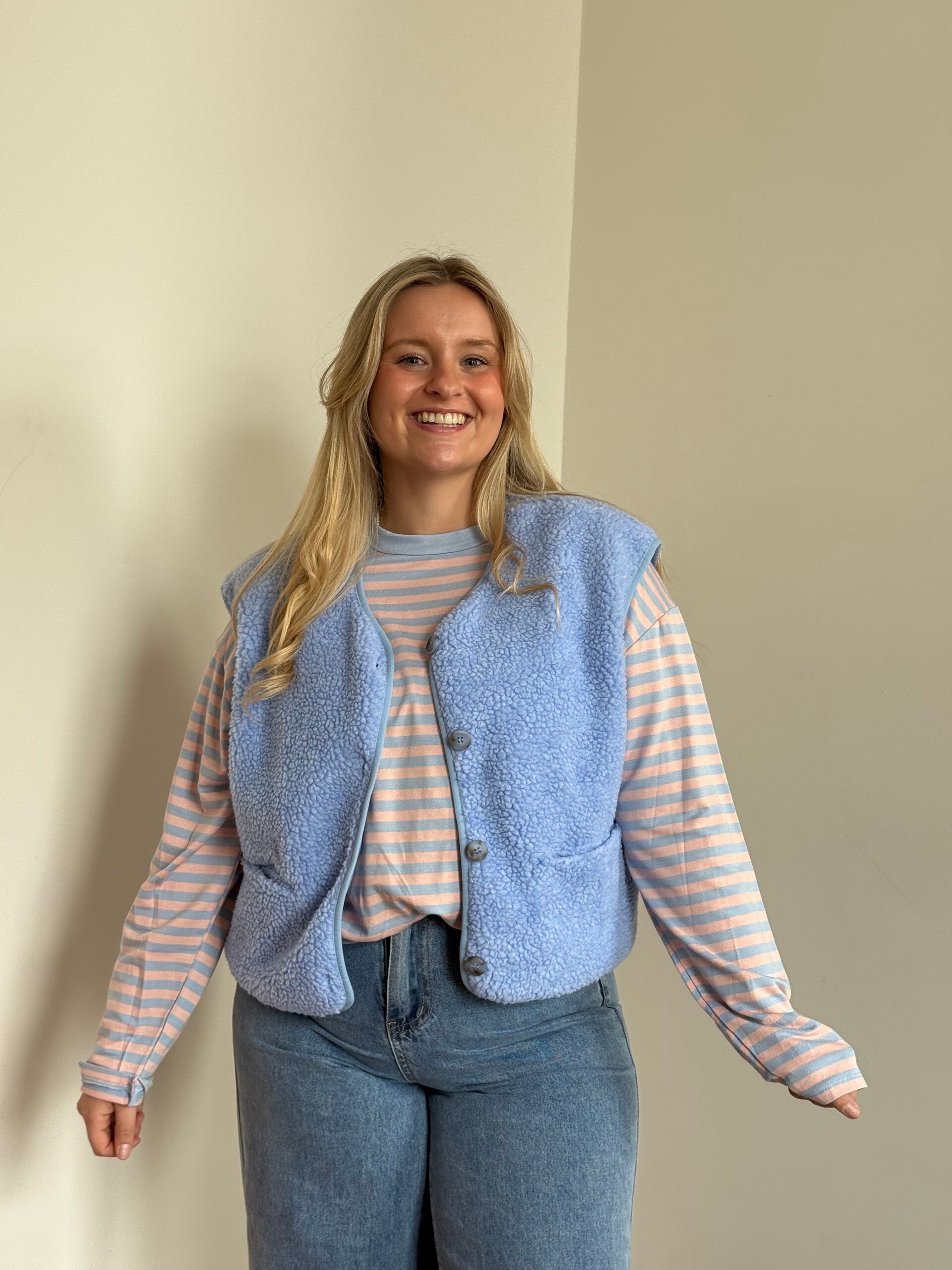 Nele is 1m58 en draagt M/L.