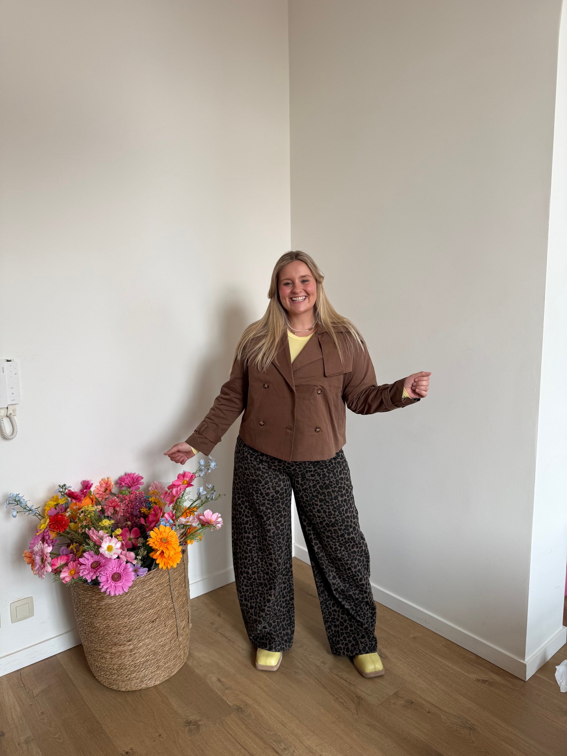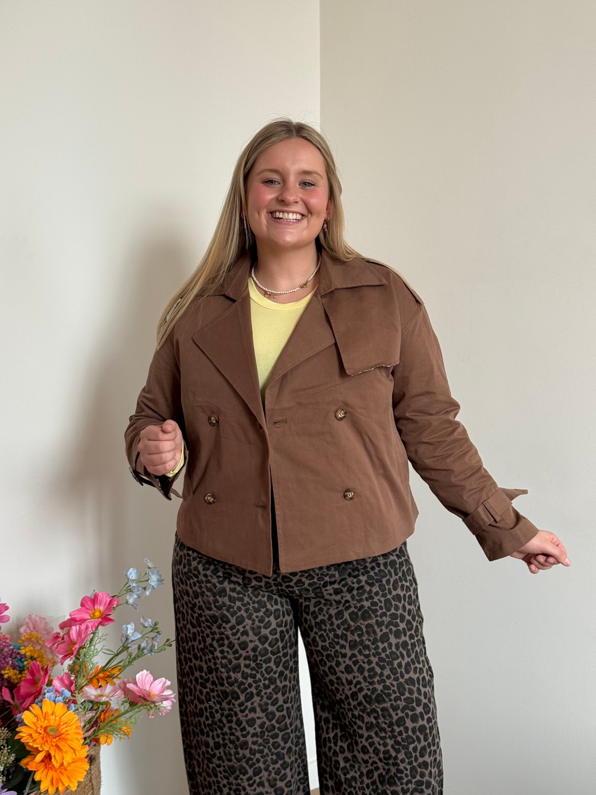Pasvorm: korte trenchcoat valt op maat. Binnenvoering is afgewerkt met een leuk pantermotief.