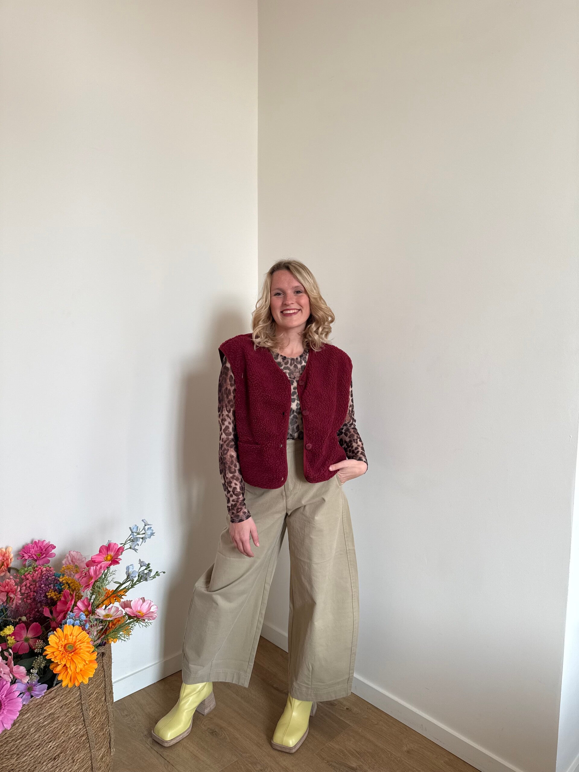 Olivia debardeur is beschikbaar in verschillende kleuren: bordeaux, blauw en groen.