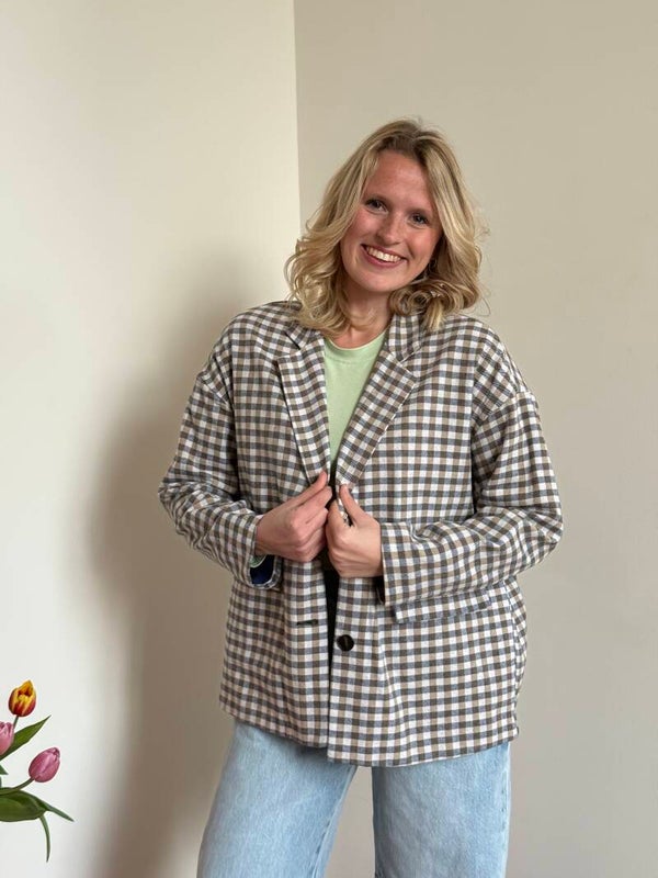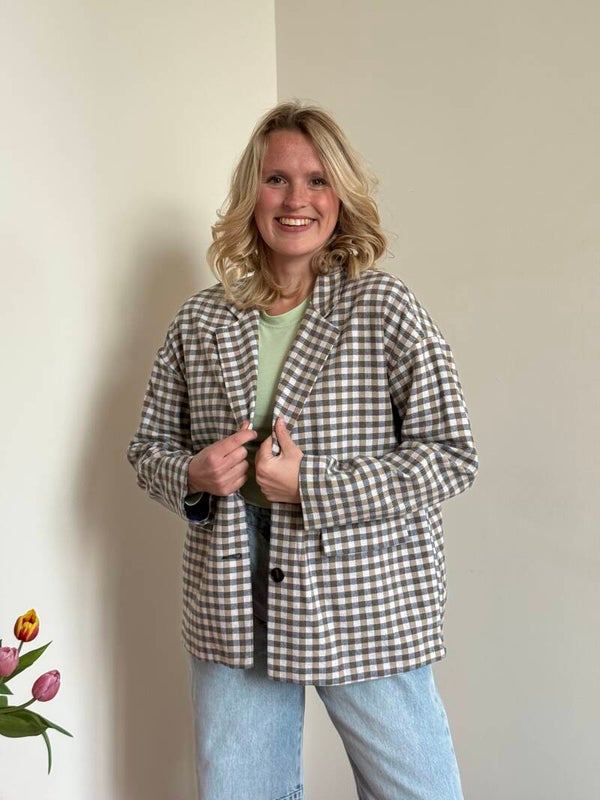 Billie blazer geruit beige blue