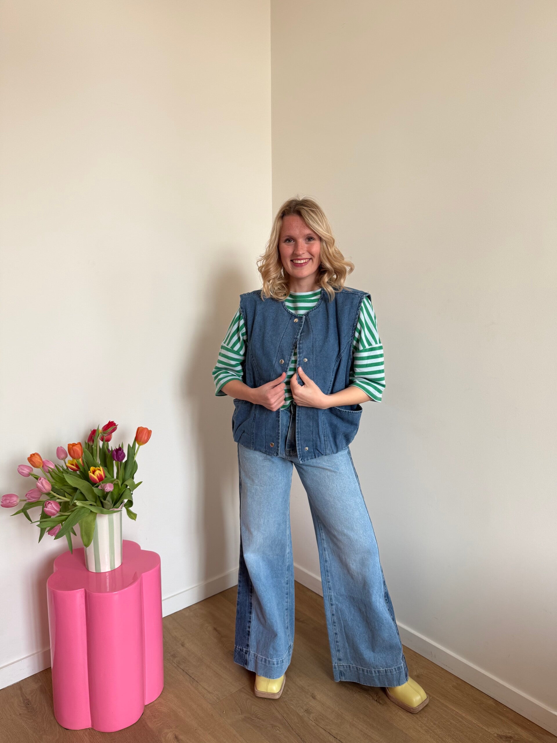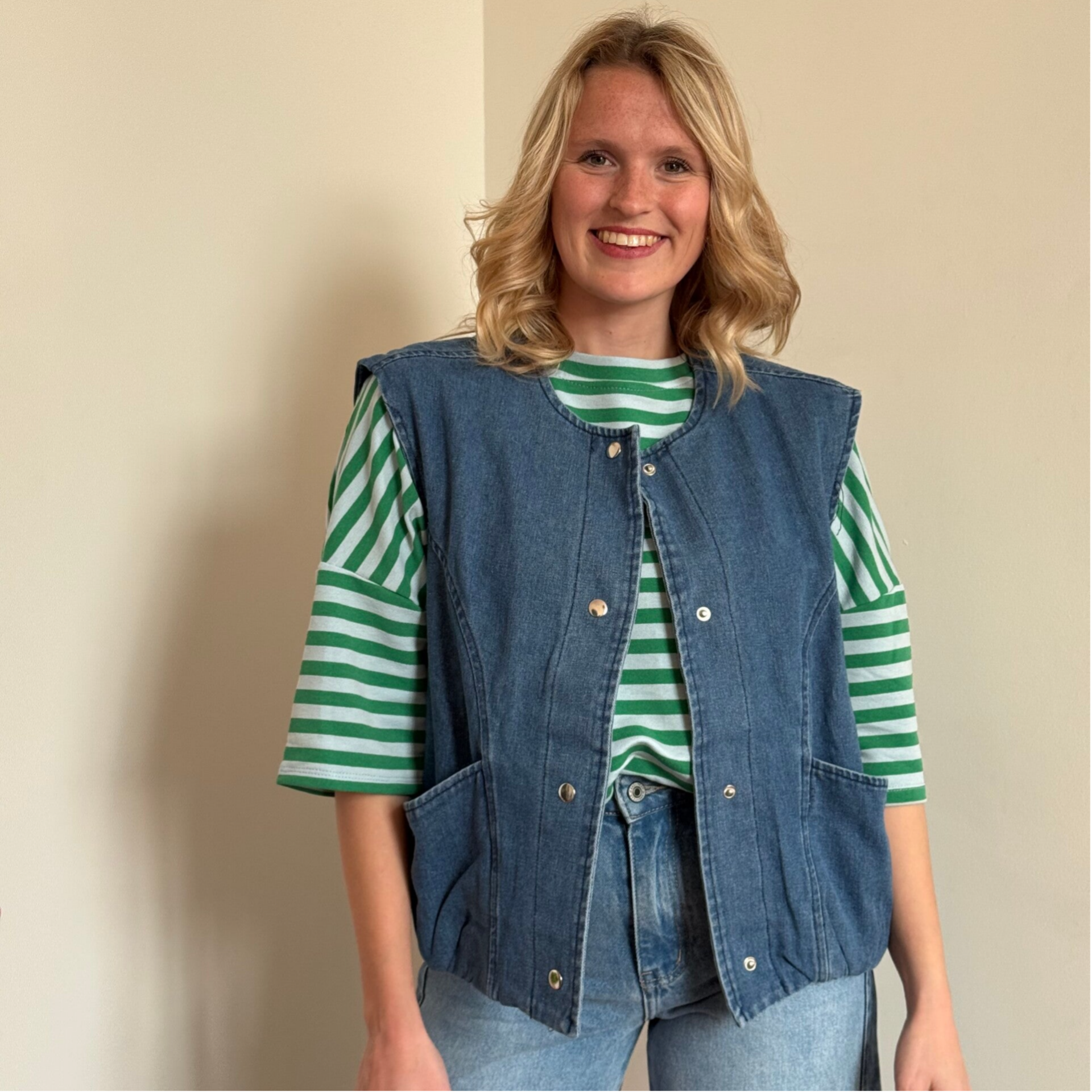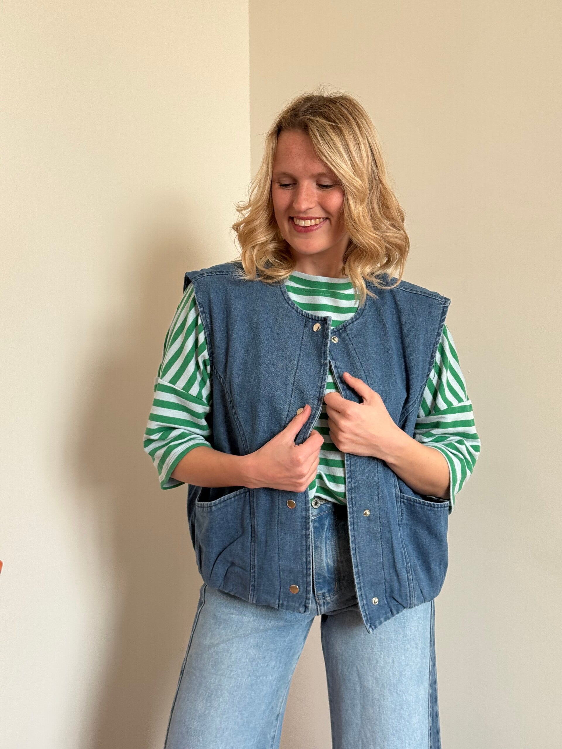 • Onze Nikki debardeur is leuk op iedere longsleeve.